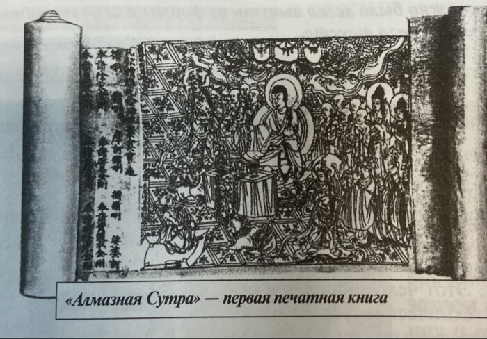 Возникновение бумаги, в свою очередь, привело к появлению КНИГОПЕЧАТАНИЯ. В IV в. предки сегодняшних китайцев научились делать эстампы с камня на бумагу. В эпоху династии Тан (618-907 гг.) была освоена технология печатания с помощью вырезанных на деревянных досках иероглифов. В эпоху династии Северная Сун, а именно в XI в. Би Шэн (990—1051) впервые использовал технологию книгопечатания с помощью наборного иероглифического шрифта, изготавливавшегося из глины. Эта технология заложила основу для книгопечатания с помощью наборного шрифта из свинца. В классическом понимании печати, первой печатной книгой считается «Алмазная сутра», изготовленная во времена правления династии Тан. Это издание отличается от тех, что были изготовлены ранее высочайшим качеством и усовершенствованной технологией печатания.При помощи бумаги и книгопечатания у людей появилась возможность передавать информацию на большие расстояния и сохранять ее на протяжении столетий.