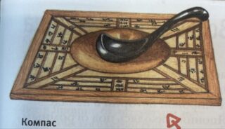 Еще одно из четырех великих изобретений Древнего Китая – КОМПАС. Точная дата его создания неизвестна. Предположительно, прибор придумали в III веке до н.э. Компас имел вид ложки с шарообразной выпуклой частью и тонким черенком. Она помещалась на отполированную до гладкости пластину из меди или дерева, на которой были отмечены стороны света в виде знаков зодиака. Изготовленная из магнетита ложка опиралась на выпуклую часть, но не была жестко зафиксирована, а черенок свободно висел над поверхностью. Ее нужно было покрутить, и через некоторое время черенок останавливался и указывал на юг. Такой компас работал с погрешностями, но его активно использовали в разных целях: для навигации в море или пустыне; во время строительства – для соблюдения законов фэн-шуй; для предсказания будущего.