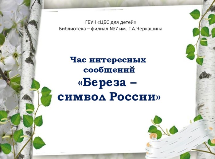 11 апреля в нашей стране отмечают День березы. Берёза – символ и гордость русского народа. Она вызывает в нас чувства, созвучные щедрой и отзывчивой русской душу.